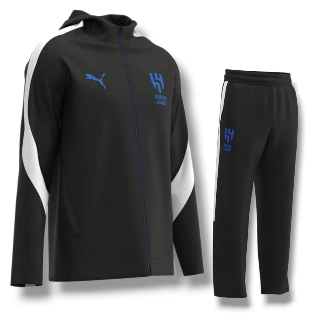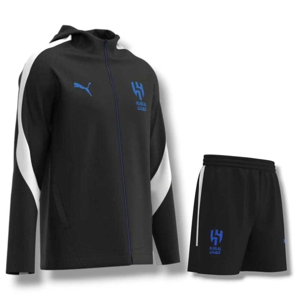 تم تصميم طقم السفر الرسمي هذا خصيصاً ليرافق نجوم نادي الهلال في تنقلاتهم ورحلاتهم، ليجمع بين الراحة الفائقة المطلوبة للسفر وبين اللمسة الأنيقة التي تعكس مكانة النادي.