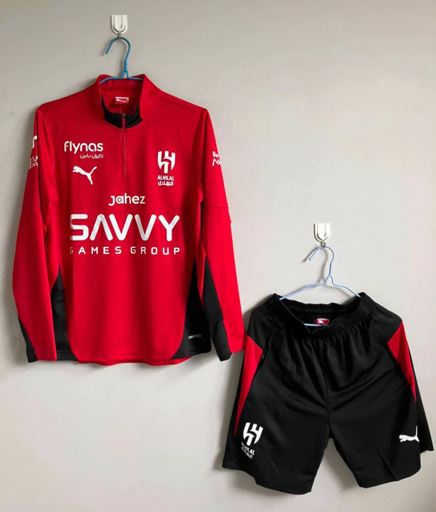 طقم سويتر تدريب الهلال الرسمي باللون الأحمر الجديد 2025-2026، مصنوع من خامات عالية الجودة تمنحك الراحة والتهوية أثناء التمارين.