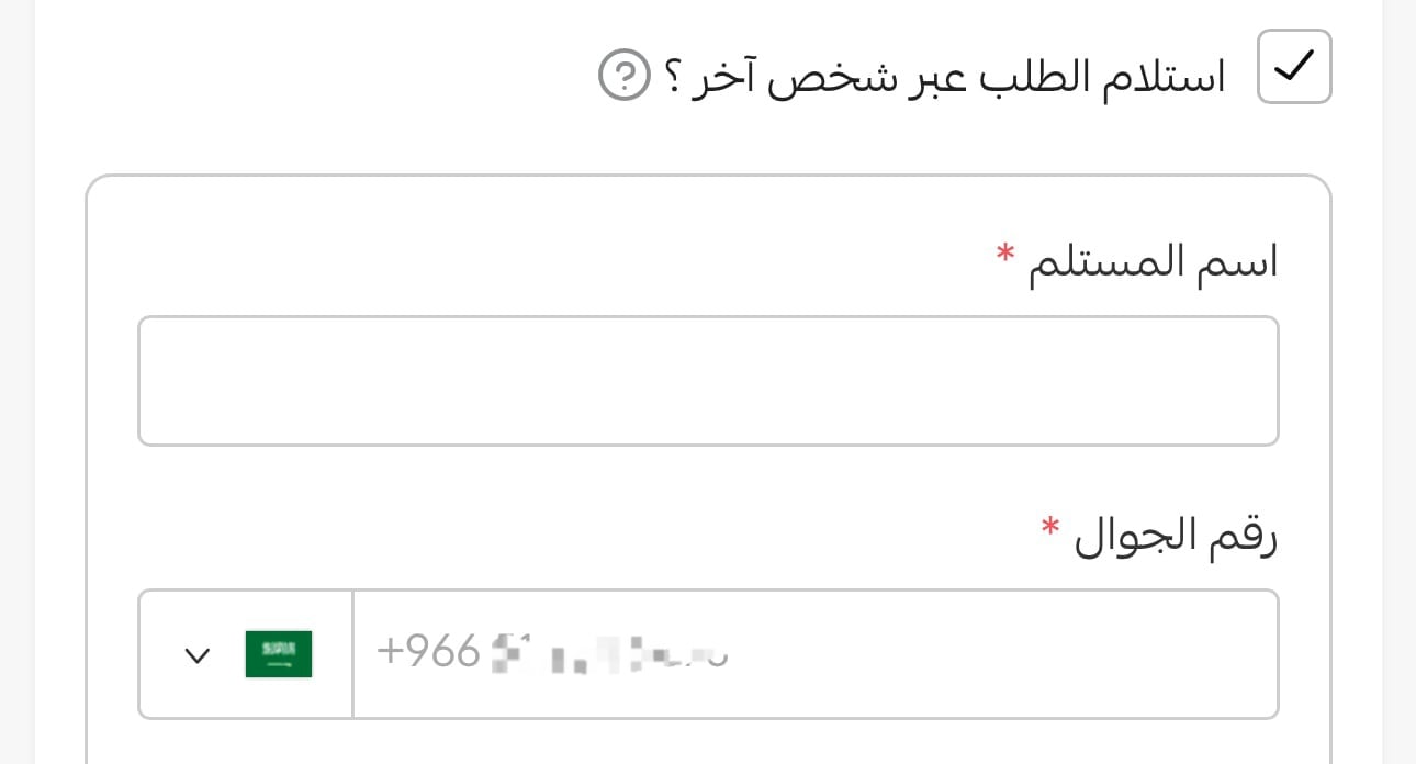 عند تعبئة عنوان المستلم, اضغط على خيار